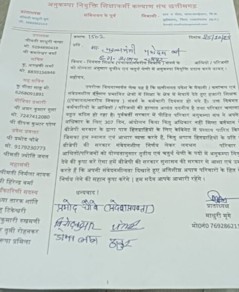 आज अनुकंपा नियुक्ति शिक्षाकर्मी कल्याण संघ