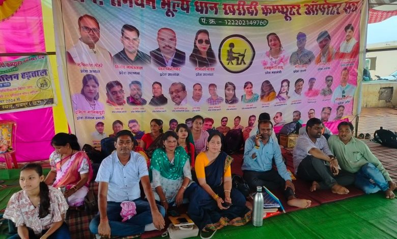 डाटा एंट्री ऑपरेटरों द्वारा रायपुर के तुता में हड़ताल जारी