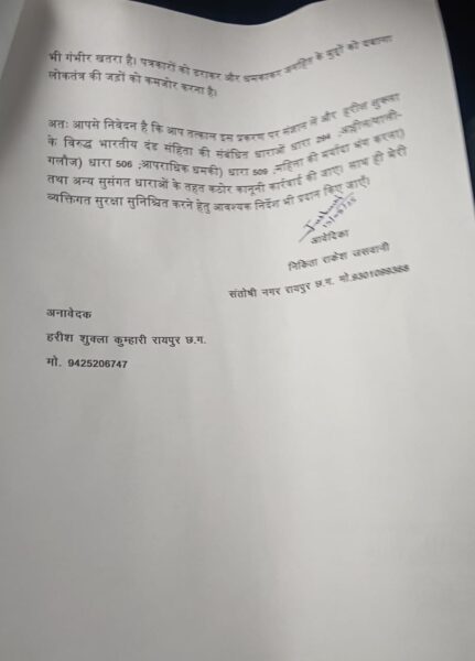 हरीश शुक्ला की शिकायत दुर्ग आई जी और एसपी से की गई: