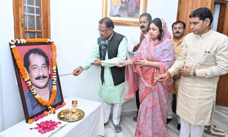 सच तक इंडिया रायपुर 08 मार्च 2024 मुख्यमंत्री श्री विष्णु देव साय ने आज यहाँ मुख्यमंत्री निवास में पूर्व सांसद एवं केन्द्रीय मंत्री स्वर्गीय श्री दिलीप सिंह जूदेव की जयंती पर उनके छायाचित्र पर पुष्प अर्पित कर उन्हें नमन किया।इस अवसर पर राजस्व मंत्री श्री टंकराम वर्मा, श्रीमती प्रियंबदा सिंह जूदेव और श्री ओम प्रकाश सिन्हा भी उपस्थित थे।