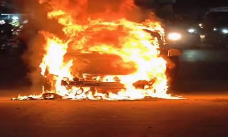 रायपुर हादसा: चलती लग्जरी कार में अचानक लगी आग, ड्राइवर ने अपनी जान बचाई