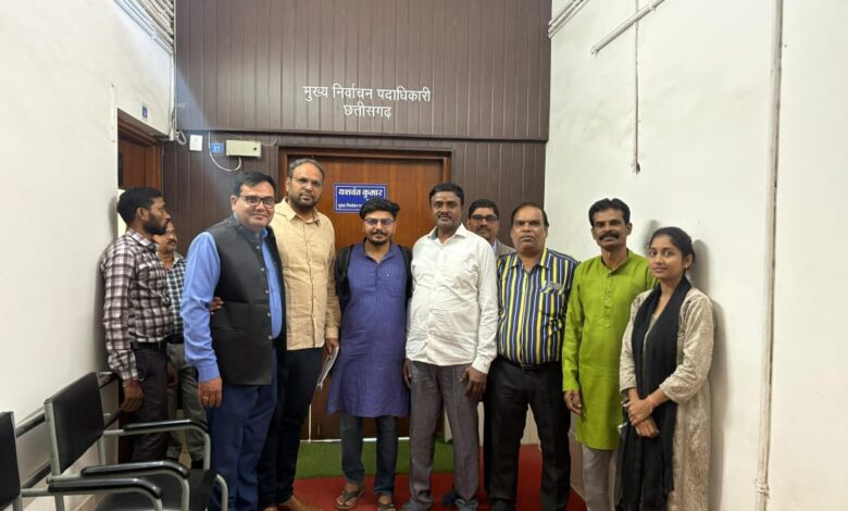 छत्तीसगढ़ SIR सचेतन मताधिकार बचाओ मोर्चा (SSMBM) की टीम आज मुख्य निर्वाचन पदाधिकारी (CEO) श्री यशवंत कुमार से मिली और राज्य में चल रहे विशेष गहन पुनरीक्षण (SIR) के दौरान जमीनी स्तर पर लोगों को हो रही परेशानियों व प्रक्रिया में दिखाई दे रही गंभीर अनियमितताओं के बारे में विस्तार से अवगत कराया। टीम ने कहा कि वर्तमान समयसीमा अव्यावहारिक है और दूरस्थ आदिवासी क्षेत्रों में BLO द्वारा गणना प्रपत्रों का वितरण अभी भी अत्यंत धीमा है।