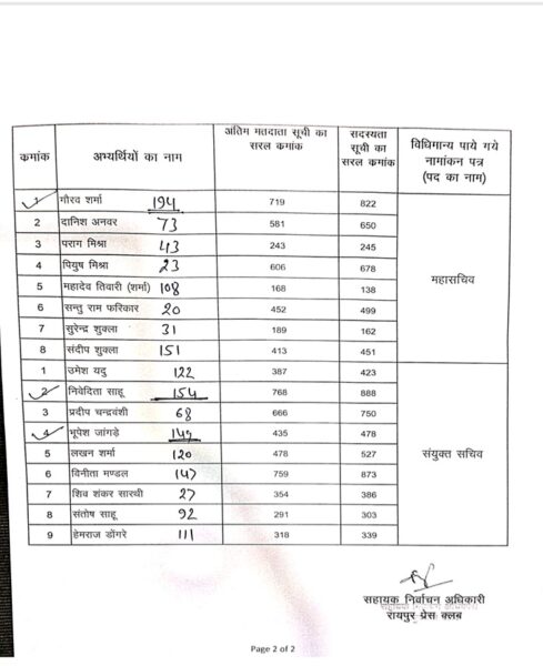 रायपुर प्रेस क्लब के मोहन तिवारी अध्यक्ष,गौरव महासचिव निर्वाचित